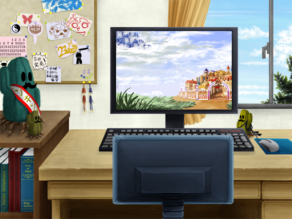 ある設定に基づいて描いた部屋の机周辺。